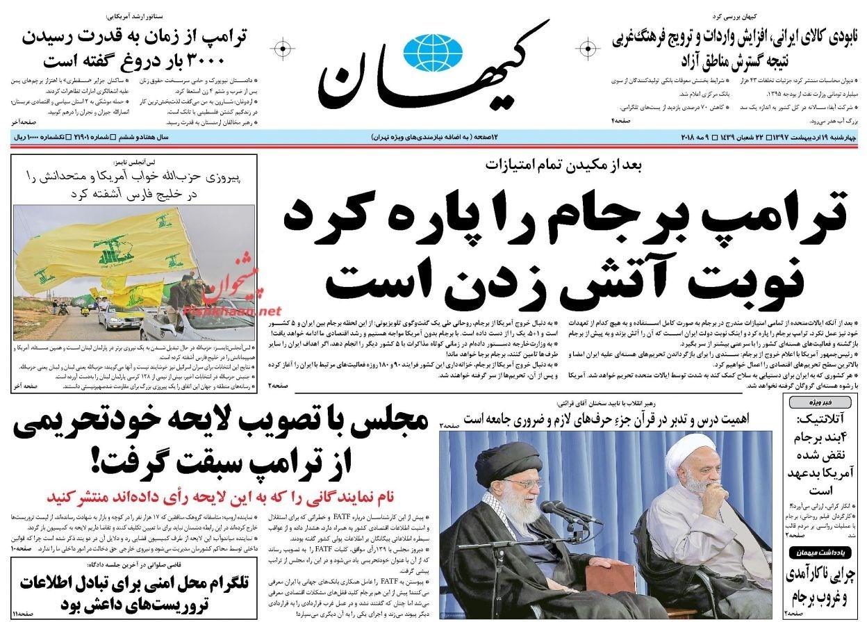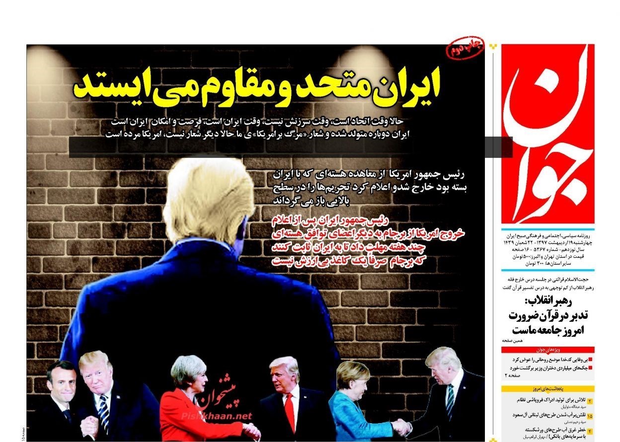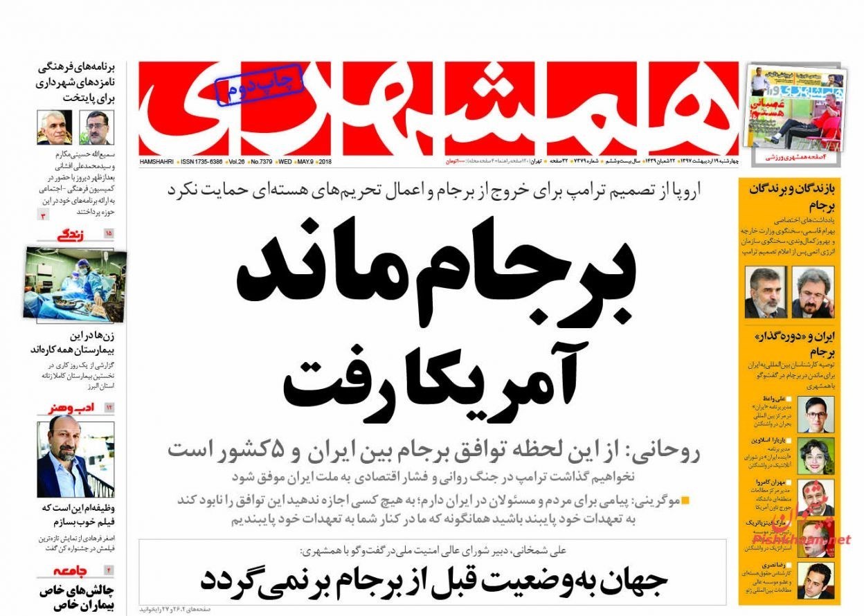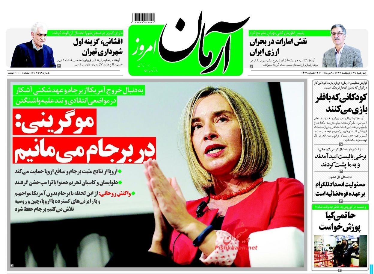 منتخب تصاویر صفحات نخست روزنامه‌های چهارشنبه 19 اردیبهشت منتشر می‌شود.