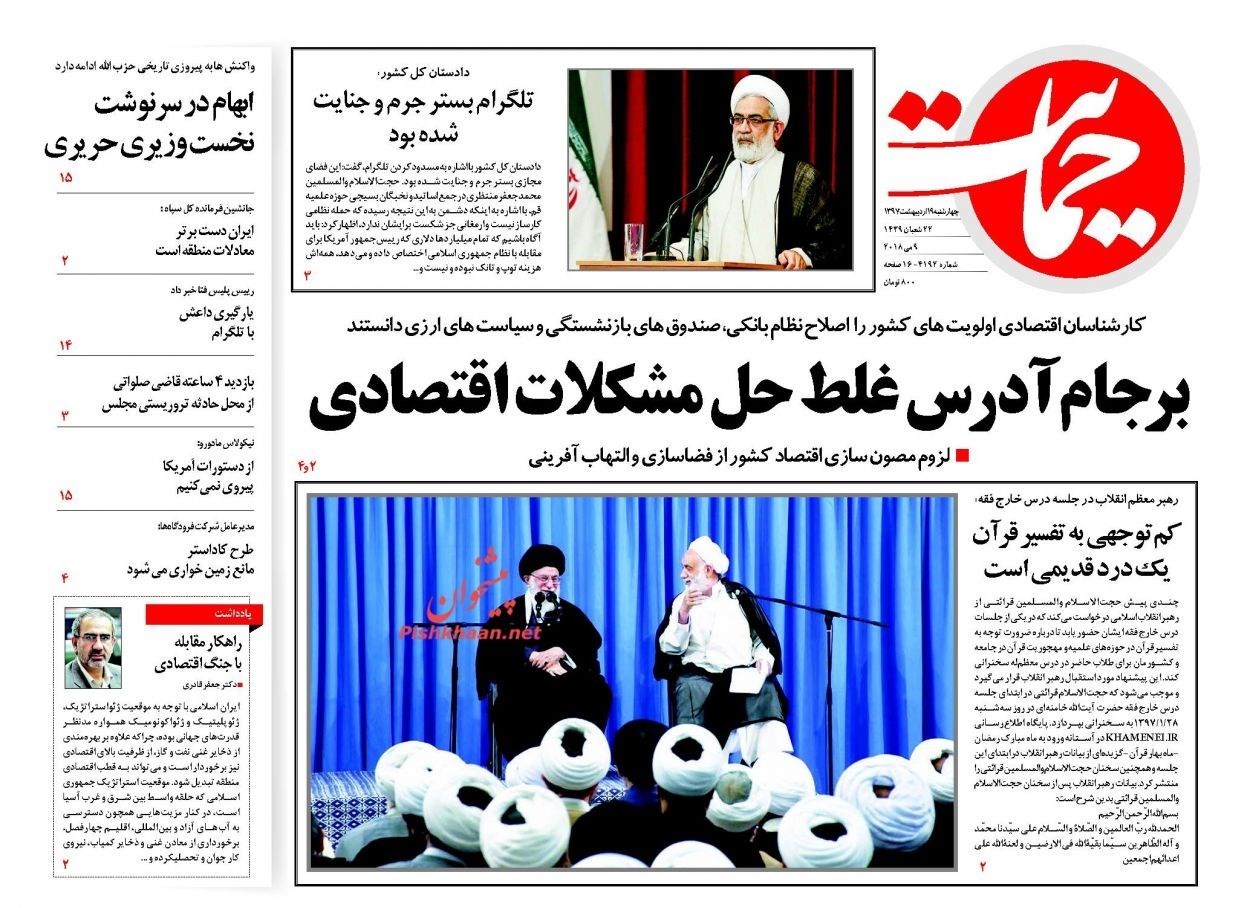تصاویر صفحه روزنامه‌های چهارشنبه 19 اردیبهشت