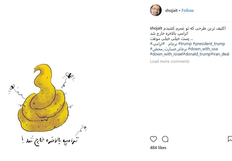 سیدمسعود شجاعی طباطبایی کاریکاتوریست متعهد و ارزشی که دبیریِ بسیاری از رویدادهای کاریکاتور در جبهه فرهنگی انقلاب اسلامی را بر عهده داشته است، با خلق اثری ذیل آن نوشت: «کثیفترین طرحی که تو عمرم کشیدم! ترامپ بالاخره خارج شد!»