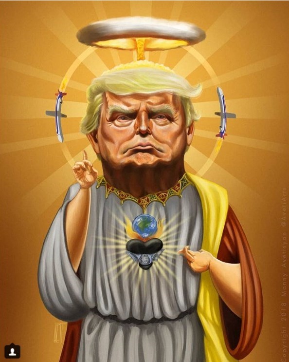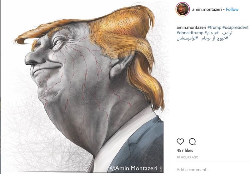 امین منتظری کاریکاتوریست، گرافیست و طراح هنری، اثری را خلق کرده است که شکست و خُردشدن ترامپ را در چهرهاش نشان میدهد: