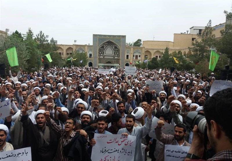 به گزارش خبرگزاری تسنیم از قم، اجتماع بزرگ حوزویان در اعتراض به خروج آمریکا از برجام و عهدشکنی سران کاخ سفید، ظهر امروز در مدرسه فیضیه قم برگزار شد.