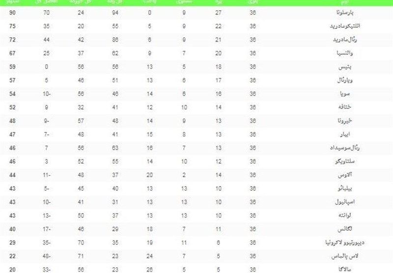 جدول ردهبندی لالیگا را در زیر مشاهده کنید.