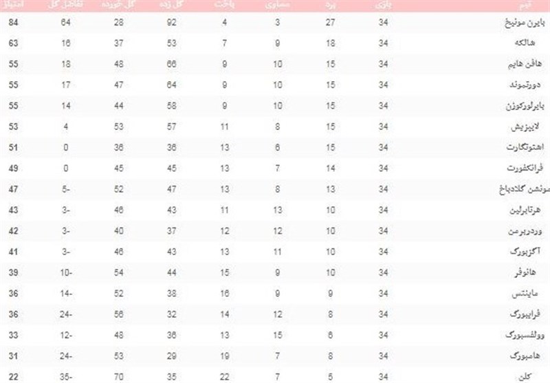 جدول رده‌بندی بوندس‌لیگا را در زیر مشاهده کنید.
