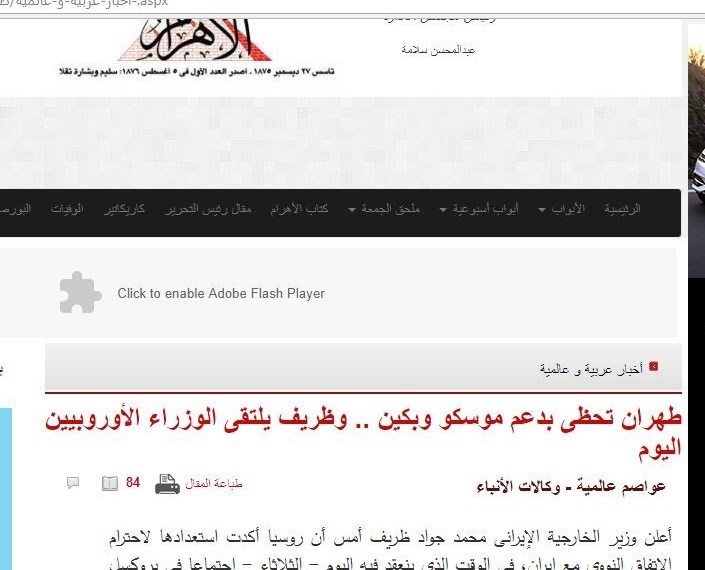 اما روزنامه الاهرام مصر در مطلبی با عنوان "تهران از حمایت مسکو و چین برخوردار است.. ظریف امروز با وزرای خارجه اروپا دیدار میکند" نوشت: محمد جواد ظریف وزیر خارجه ایران اعلام کرد روسیه آمادگی خود را برای احترام به توافق هستهای با ایران اعلام کرده است این در حالی است که امروز طرف اروپایی و ایرانی در بروکسل دیدار خواهند داشت تا سرنوشت توافق هستهای و راههای نجات آن پس از خروج آمریکا را بررسی کنند.