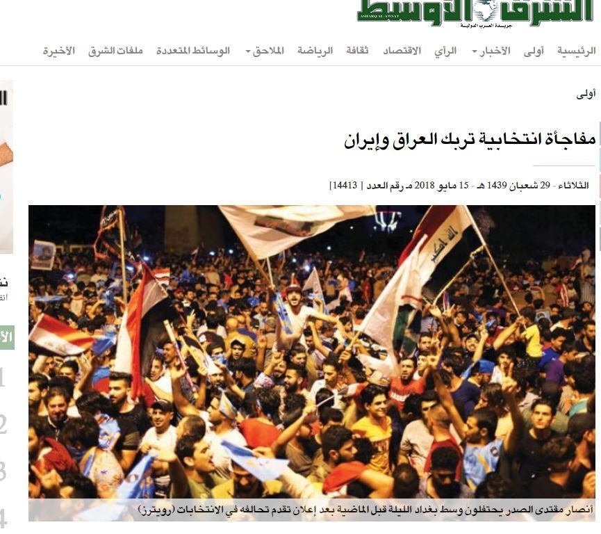 در همین ارتباط روزنامه الشرق الاوسط مطلبی با این عنوان منتشر کرد: "رخداد غیرمنتظره انتخاباتی، عراق و ایران را سردرگم کرد".