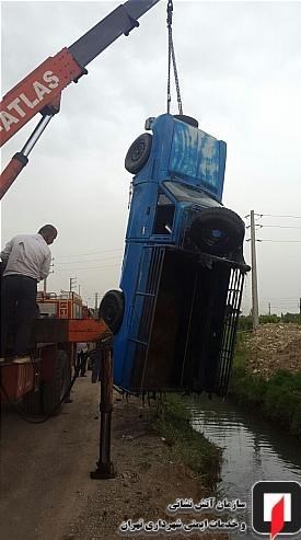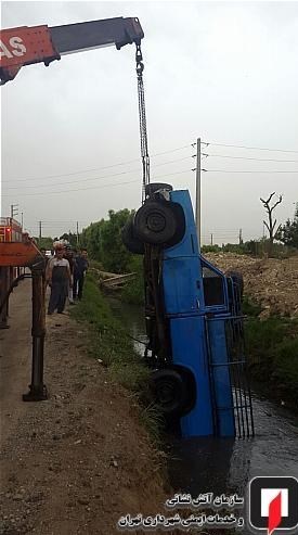 علیرضا غلامپور؛ فرمانده آتشنشانان اعزامی درباره جزئیات این حادثه اظهار کرد: یک دستگاه نیسانوانت حین حرکت در راه خاکی مجاور کانال آب به علت نامشخصی از مسیر منحرف شده، به داخل این کانال سقوط کرد و اندک اندک به طور کامل به زیر آب فرورفت.