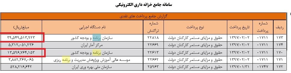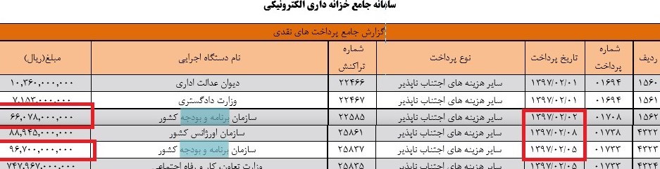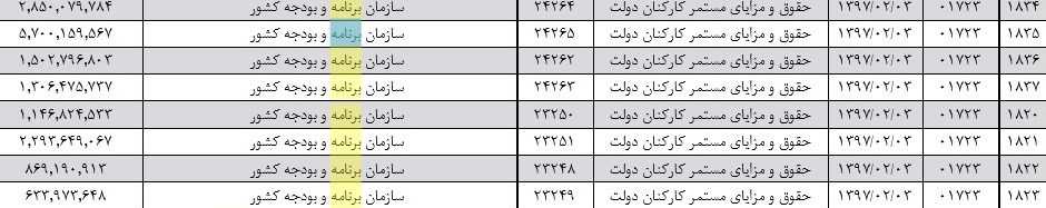ریز پرداختها به سازمان برنامه و بودجه در یک ماه