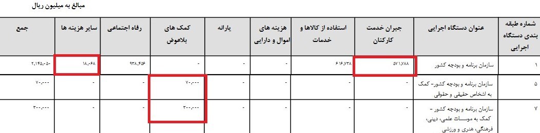 اما نکته سوم این است که با مراجعه دوباره به جداول بودجه، در قسمت کمکهای بلاعوض که رقمی معادل 7 میلیارد تومان برای کل سال 97 در نظر گرفته شده است، ابهامات جدید در خصوص هزینههای سازمان برنامه و بودجه ایجاد میشود، مثلاً اینکه؛ آیا رقمی برای مصرف در حوزه کمکهای بلاعوض در فروردین ماه تخصیص داده شده است؟ اگر این اتفاق افتاده این رقم به چهکسانی پرداخت شده است؟ اشخاص حقیقی و حقوقی که در ردیف مذکور آمده است چهکسانی هستند و در سال 96 مجموع رقمی که به اشخاص حقیقی و حقوقی از سمت سازمان برنامه و بودجه پرداخت شده چهمیزان بوده است؟