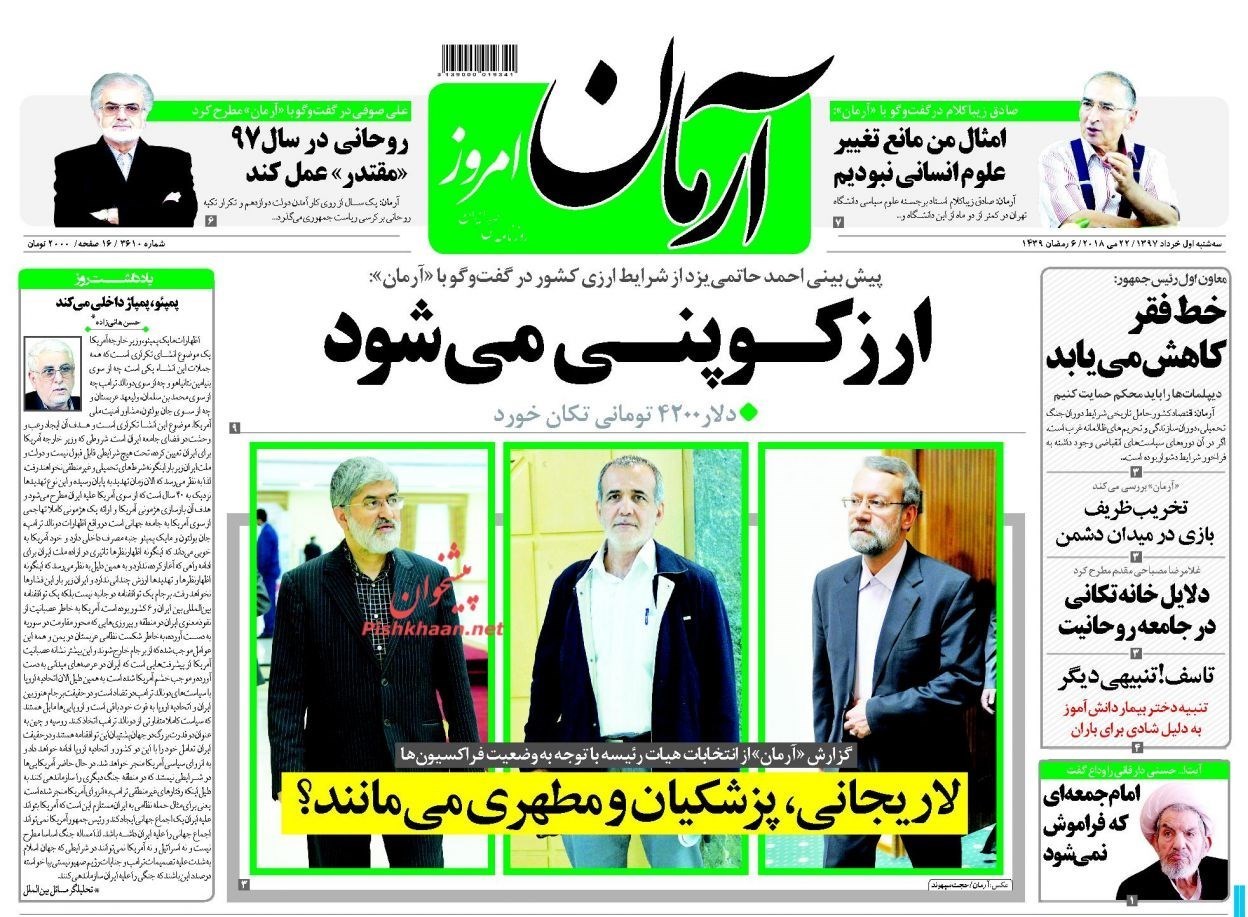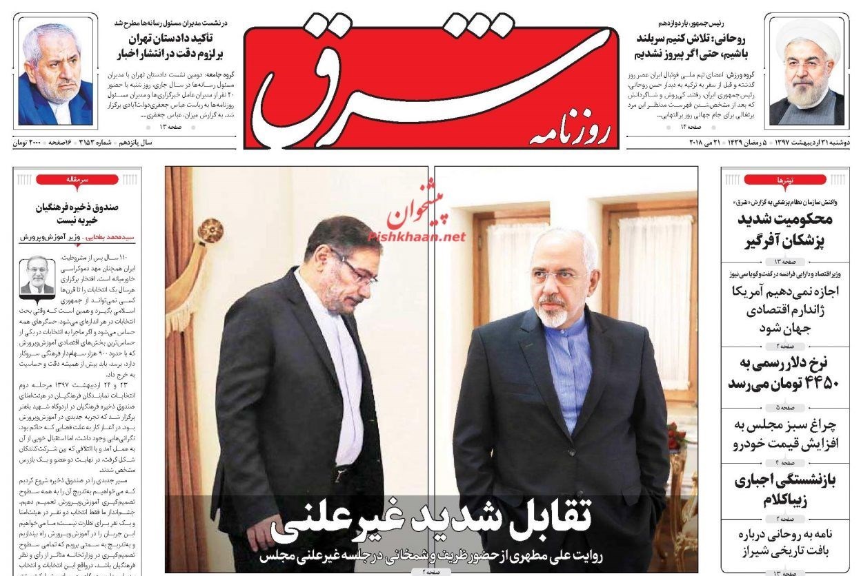 منتخب تصاویر صفحات نخست روزنامه‌های سه‌شنبه 1 خرداد منتشر می‌شود.