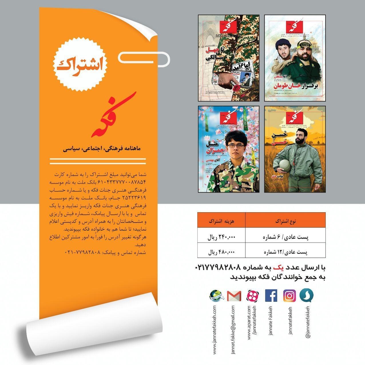 علاقه مندان میتوانند جهت خرید اشتراک ماهنامه فکه با شماره تماس 77982808-021 تماس حاصل کنند.