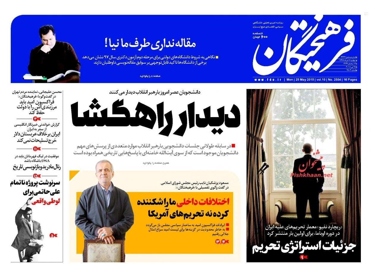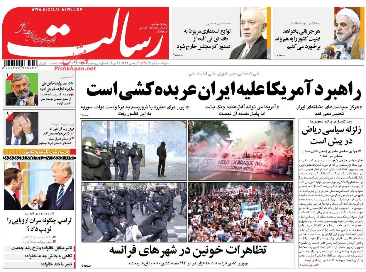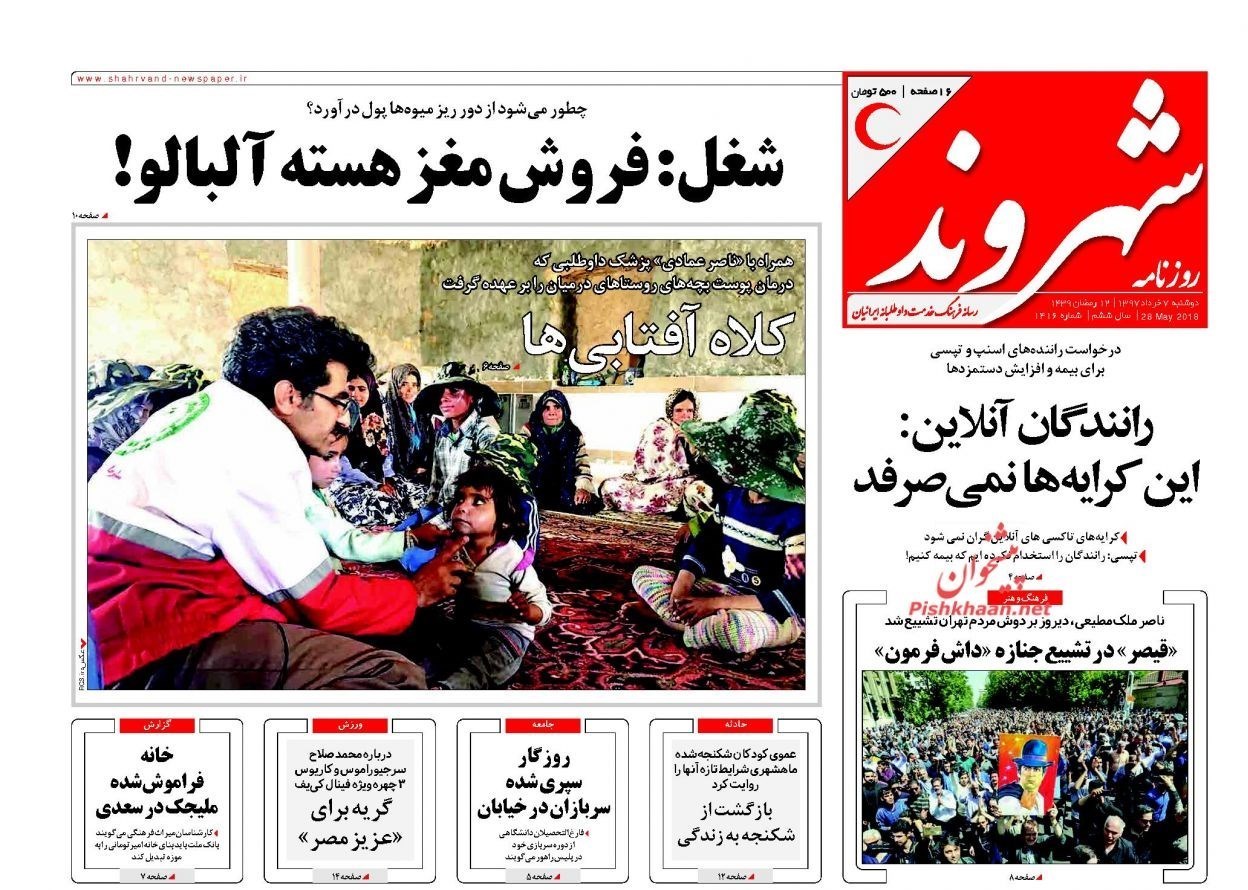 تصاویر صفحه روزنامه‌های دوشنبه 7 خرداد