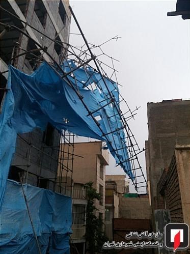 به گزارش گروه اجتماعی باشگاه خبرنگاران پویا؛ ساعت 19:14 روز گذشته بر اثر وزش باد و طوفان شدید، داربستهای فلزی یک ساختمان در حال ساخت در خیابان یاخچیآباد، میدان چهارصد دستگاه، کوچه معظمی، به صورت معلق و بر روی ساختمانهای مجاور قرار گرفته بود که شهروندان در تماس با سامانه 125 این حادثه را اطلاع داده و آتشنشانان ایستگاه 82 به محل حادثه اعزام شدند.