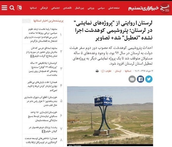 خبرگزاری تسنیم در 12 خرداد 97 در گزارشی با عنوان «روایتی از "پروژههای نمایشی" در لرستان؛ پتروشیمی کوهدشت اجرا نشده "تعطیل" شد» به تشریح وعدههای اجرایینشده احداث پتروشیمی کوهدشت پرداخت که این گزارش واکنشهای مختلفی را در پی داشت.