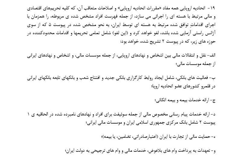 تصویری از بخشی از بند 19 برجام بر اساس ترجمه رسمی وزارت امور خارجه