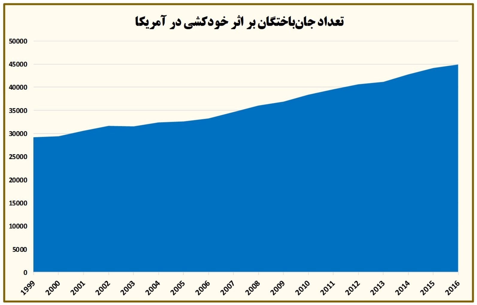 میزان مرگ‌ومیر ناشی از خودکشی در آمریکا طی 18 سال اخیر به‌شدت افزایش یافته است، و در بیش از نیمی از موارد، قربانیان سابقه‌ای در زمینه بیماری‌ها یا اختلافات روانی نداشته‌اند.
