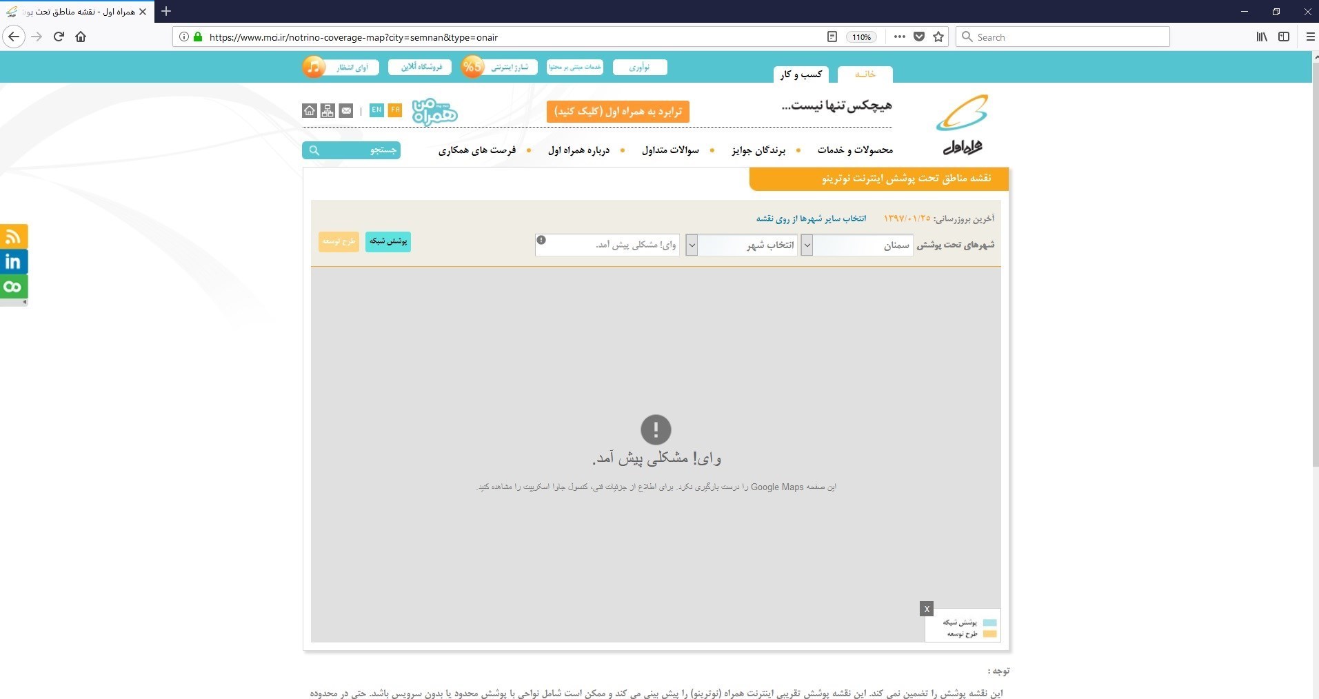 به گزارش خبرنگار علمی باشگاه خبرنگاران پویا؛ همزمان با اقدام گوگل در قطع دسترسی به API سرویس گوگلمپس برای دامنههای ir، امکان چک کردن نواحی تحت پوشش خدمات اپراتورهای تلفن همراه کشور روی نقشه از دسترس خارج شد.