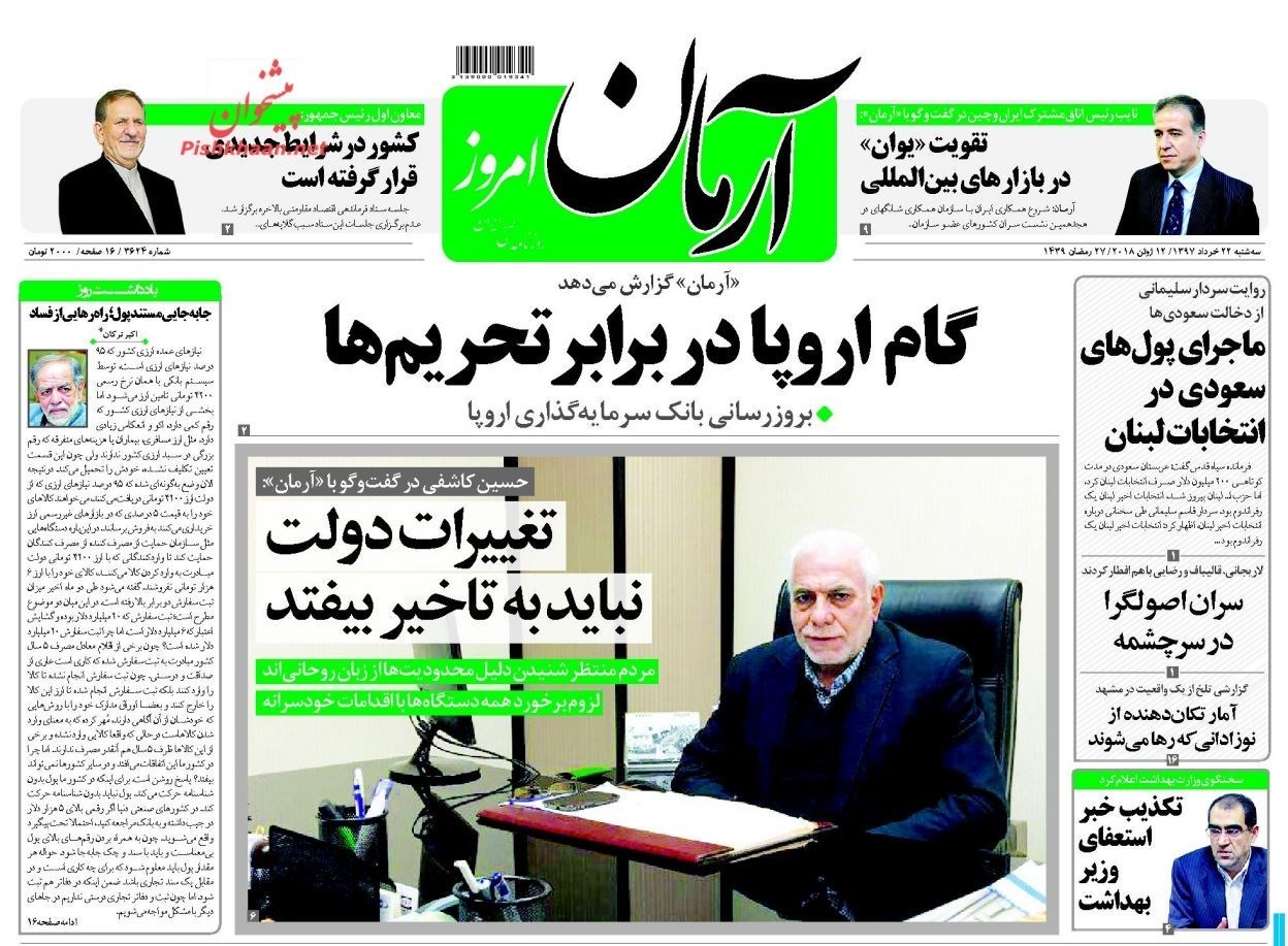 تصاویر صفحه روزنامه‌های سه‌شنبه 22 خرداد