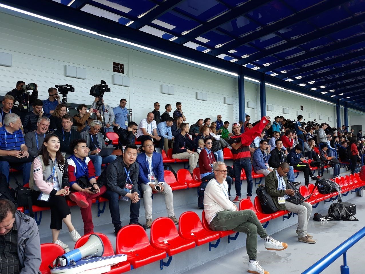 * تعداد زیادی از هواداران کنار زمین تمرین بودند و یکسری از بچهها با لباس متحدالشکل به تشویق تیم میپرداختند.