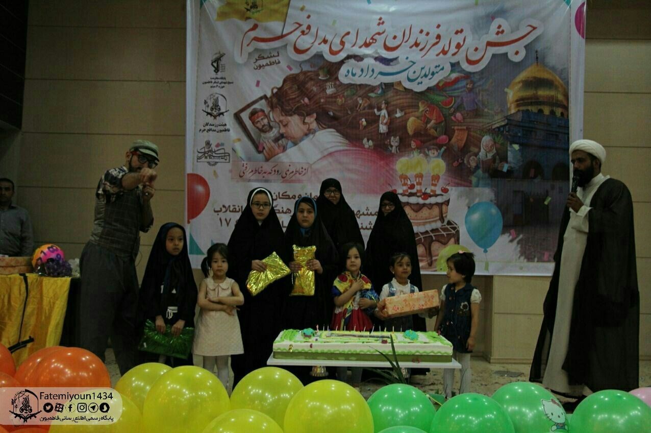 بچههای شهدای مدافع حرم از لشکر فاطمیون در فرهنگسرای انقلاب واقع در شهر مشهد، تولد خود را جشن گرفته و در کنار یکدیگر عکسهای یادگاری گرفتند. پیش از این نیز فرزندان شهدای مدافع حرم متولد هر ماه در یک جشن مشترک، یاد شهدای خود را زنده میکردند.