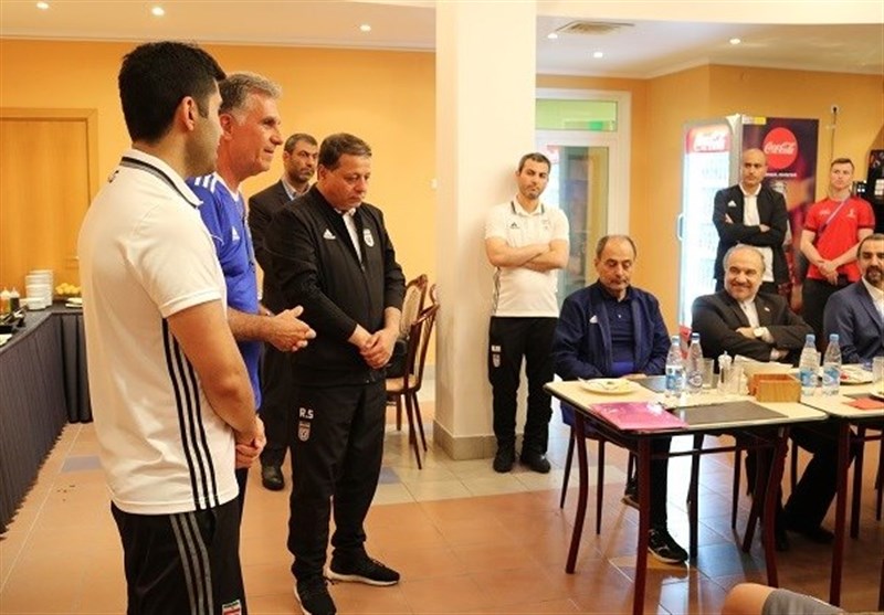 پس از صحبتهای دبیرکل فدراسیون فوتبال، کارلوس کیروش سرمربی تیم ملی هم با قدردانی از حضور وزیر ورزش، اسلامیان و سفیر ایران در روسیه در اردوی تیم ملی گفت: آقای ساکت لطف دارند، اما در اینجا سوپرمن معنا ندارد. در اینجا گروهی از بازیکنان زحمتکش و مربیانی حضور دارند که توانایی ابرکارها را دارند. جناب آقای دکتر سلطانی فر! اگر اجازه دهید میخواهم خدمتتان عرض کنم که بنده با بیش از 36 سال تجربه در مربیگری، هیچ وقت با چنین بازیکنانی کار نکردم که دریافتیشان انقدر کم باشد و ارائه و پایبندیشان انقدر زیاد.