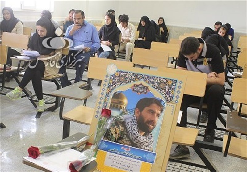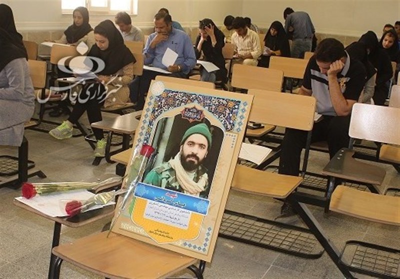 دانشجویان دانشگاه پیام نور اهواز یاد و خاطره دو تن از همکلاسی های شهید خود را در جلسه امتحان گرامی داشتند.