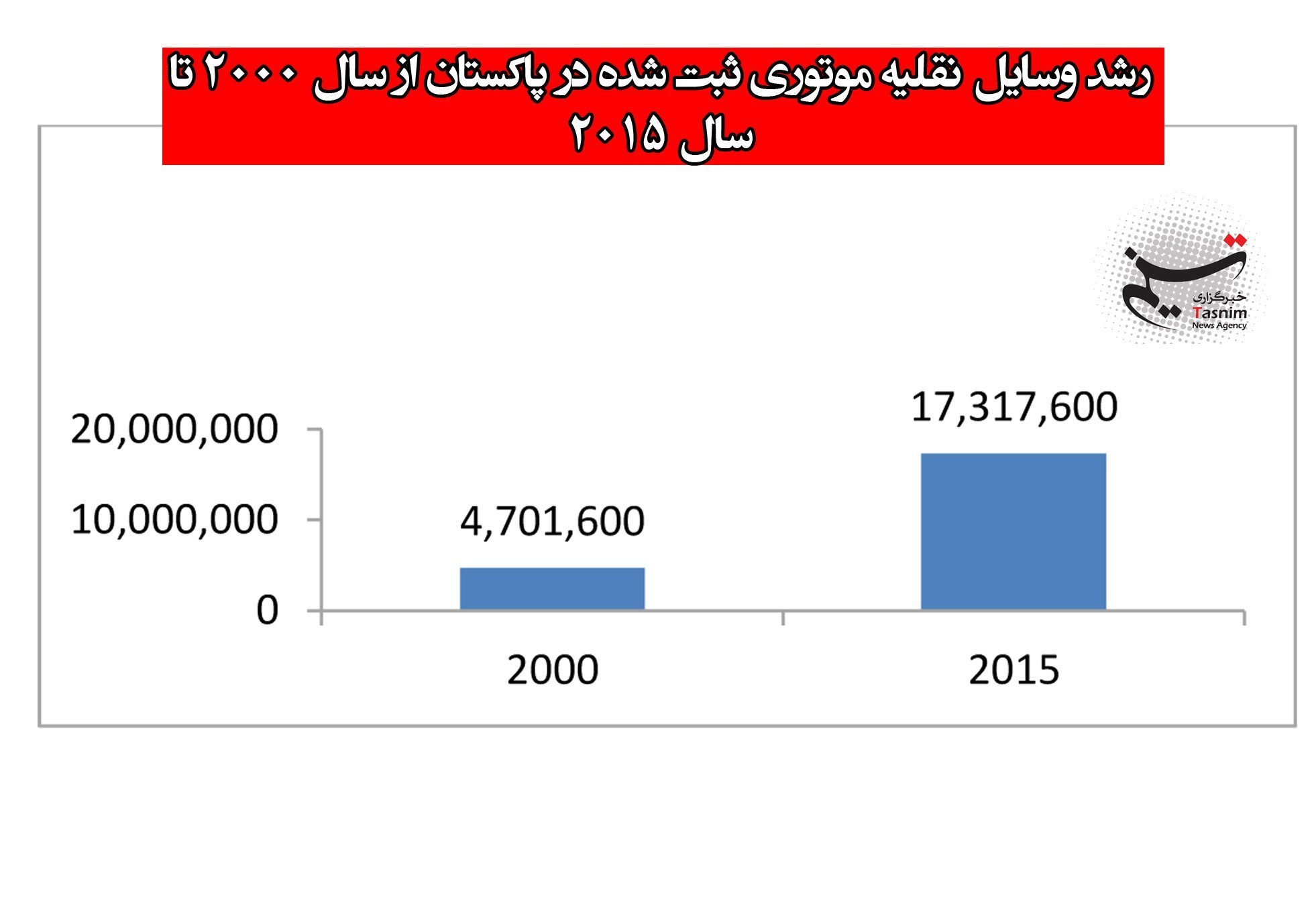 براساس مطالعه گالوپ پاکستان درباره زمانی 16 ساله با رشد 439 درصدی در افزایش وسایل نقلیه از 4میلیون و 700 هزار وسیله به بیش از 17 میلیون وسیله رسیده است که بیشترین رشد متعلق به موتورسیکلت های دو و سه چرخ و کمترین میزان رشد به وسایل نقلیه عمومی بار و مسافر اختصاص داشته است.