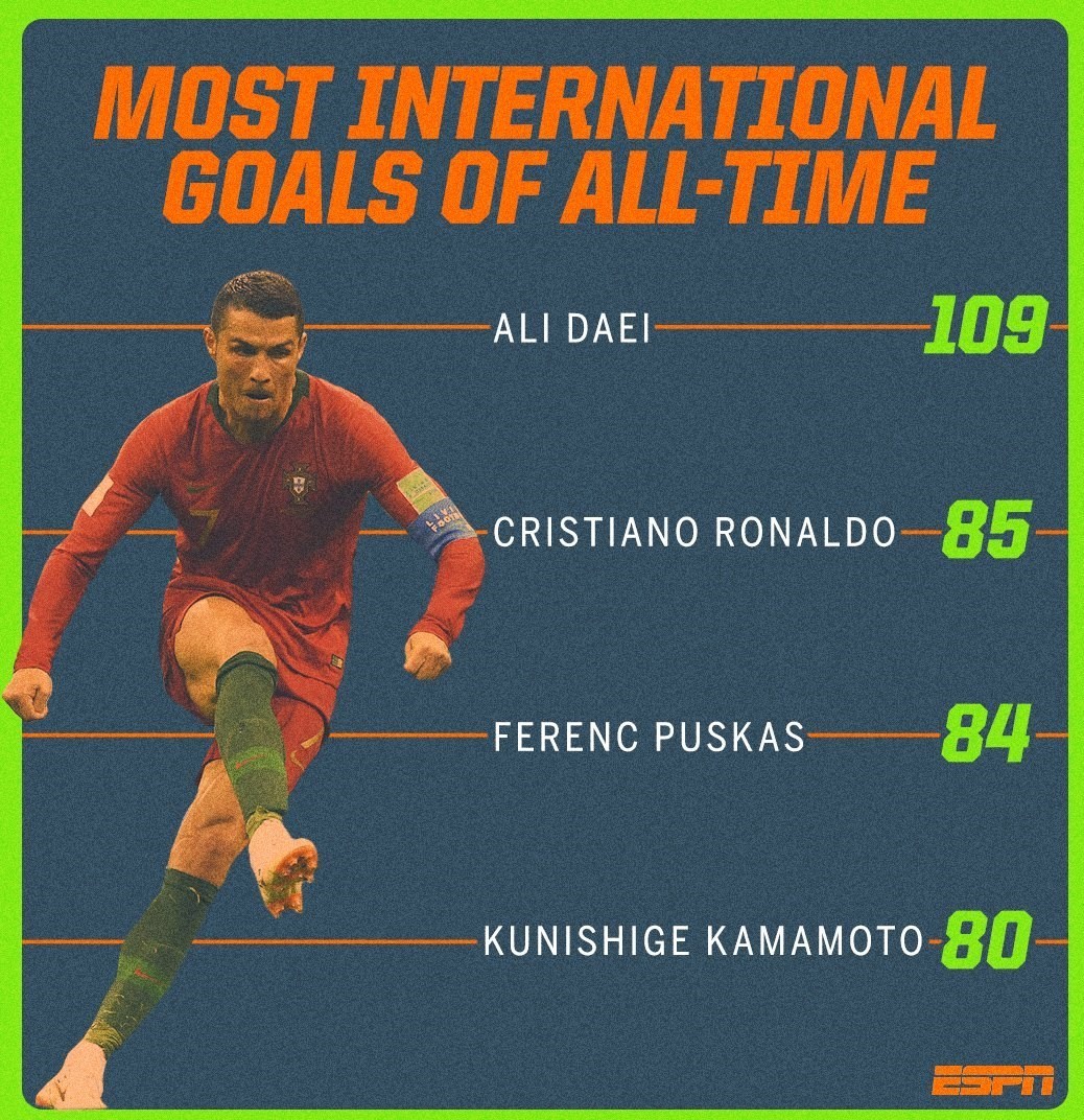 این هشتاد و پنجمین گل ملی رونالدو بود و باعث شد که او در جدول برترین گلزنان ملی جهان از فرانس پوشکاش اسطوره فوتبال مجارستان سبقت بگیرد و حالا بعد از علی دایی با 109 گل در رده دوم بایستد. به این ترتیب رونالدو به برترین گلزن ملی قاره اروپا تبدیل شد.