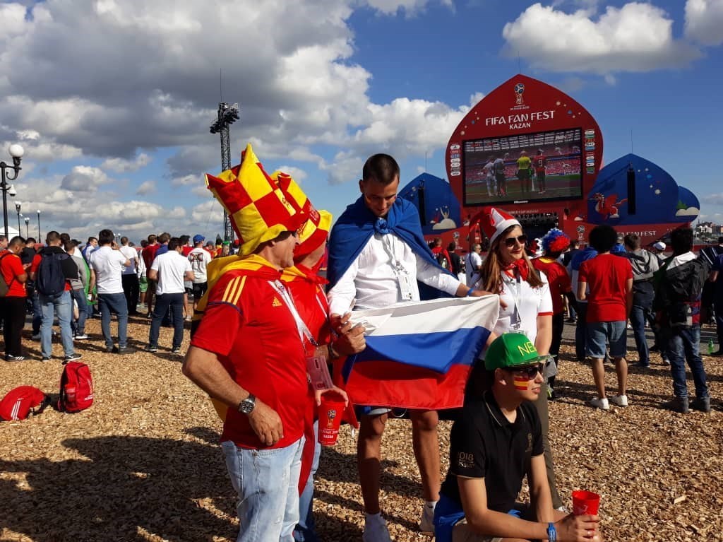 به گزارش خبرنگار اعزامی خبرگزاری تسنیم از روسیه، در حالی که حدود بیش از چهار ساعت تا آغاز دیدار تیمهای ملی اسپانیا و ایران در چارچوب هفته دوم مرحله گروهی جام جهانی 2018 باقی مانده، هواداران پرتعداد ایرانی در فنفست شهر کازان حضور دارند.