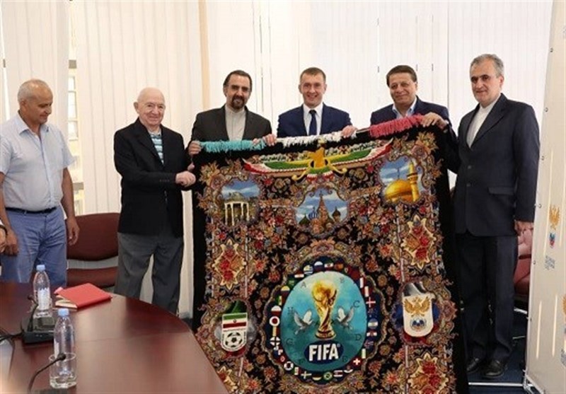 اهدای فرش دستباف جام جهانی به فدراسیون روسیه توسط ساکت+تصاویر