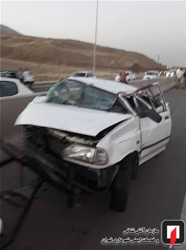 به گزارش گروه اجتماعی باشگاه خبرنگاران پویا؛ تصادف دو خودروی پراید و پژو 206 در بزرگراه شهید فهمیده به سمت غرب بعد از پل حکیم منجر به مرگ مرد چهل و سه ساله (راننده پراید) و مصدومیت پنج نفر دیگر شد.