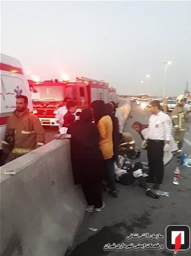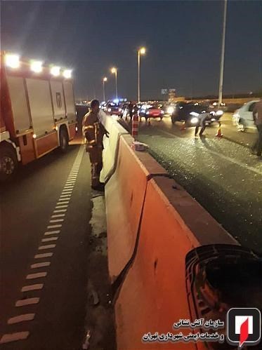در این حادثه که ساعت 20:25 روز گذشته به سامانه 125 اعلام شد، آتشنشانان ایستگاه 109 آتشنشانی با حضور در محل پس از قطع برق هر دو خودرو، قرار دادن علائم هشداردهنده و ایمنسازی محل، از نشت بنزین خودرو جلوگیری کردند و پس از پاکسازی محل حادثه، خودروها را به حاشیه امن بزرگراه انتقال دادند.