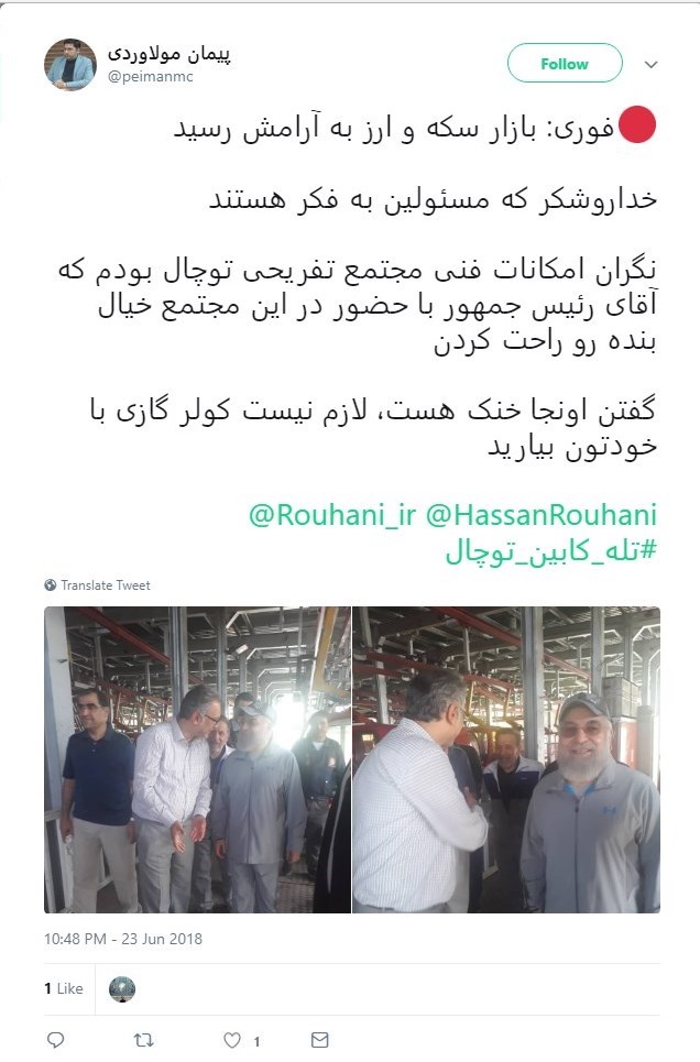 رئیسجمهور در این بازدید که بهنقل از سایت تلهکابین توچال "میهمان مجموعه تفریحی ورزشی توچال" شده بود، از اقدامات انجامشده در راستای بهسازی مسیر کوهنوردی که موجب رضایتمندی شهروندان و کوهنوردان گردیده است ابراز رضایت کرده است.