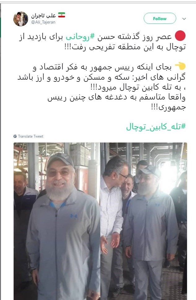 برخی از فعالان فضای مجازی به سرزدن رئیسجمهور به توچال در اوج مشکلات اقتصادی مردم اشاره و با داغ کردن هشتگ #تله-کابین به وی انتقاد کردند: