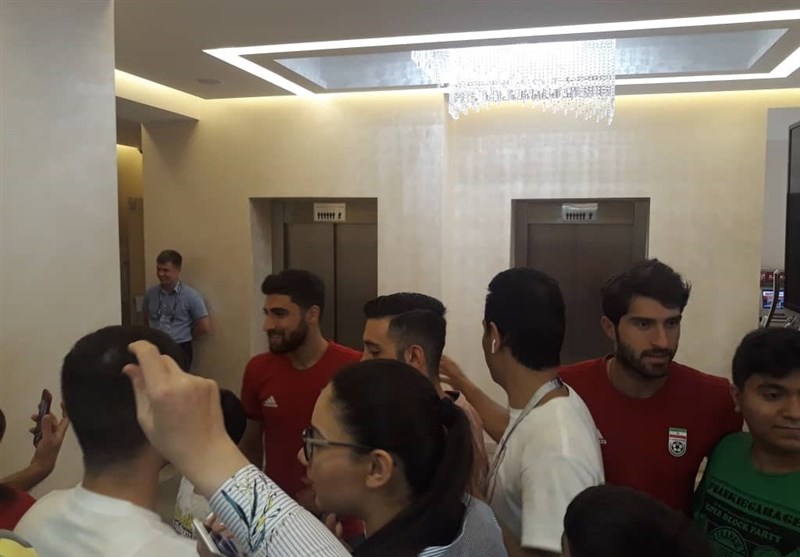هواداران تیم ملی فوتبال کشورمان در هتل محل اقامت تیم ملی حاضر شدند و از آنها استقبال کردند.