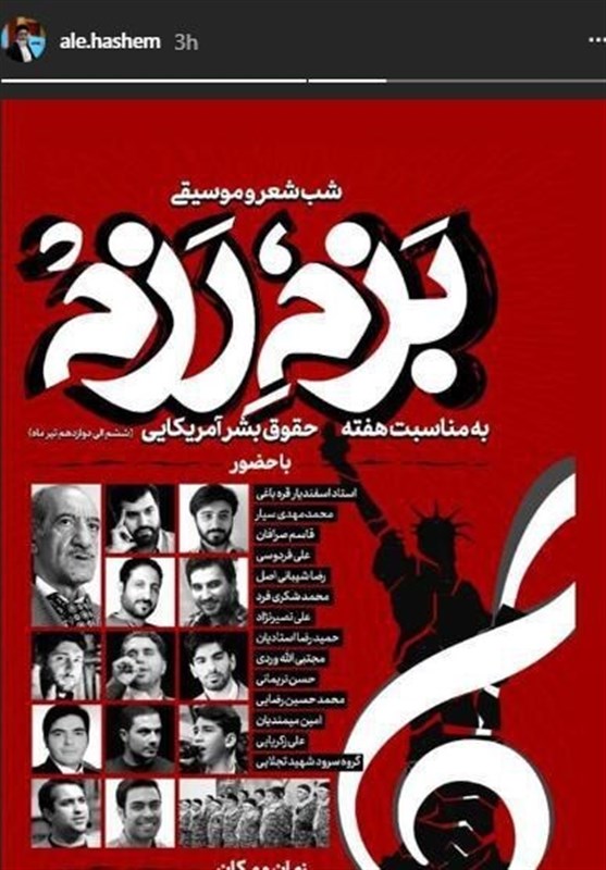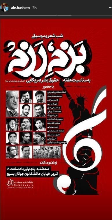 همچنین شب شعر و موسیقی «بزم رزم» هشتم تیر ماه در شهر اهواز و چهاردهم تیر ماه در شهر شیراز برگزار خواهد شد.