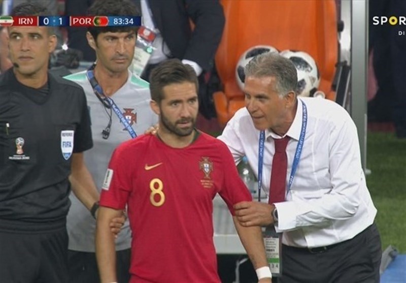 به گزارش خبرگزاری تسنیم، در جریان تساوی یک بر یک شب گذشته (دوشنبه) تیم ملی فوتبال ایران مقابل پرتغال در دور پایانی مرحله گروهی مسابقات جام جهانی 2018 روسیه، ژوائو موتینیو در دقیقه 84 قصد داشت به جای ژوائو ماریو به میدان برود که کارلوس کی‌روش، سرمربی تیم ملی کشورمان به سمت شاگرد پیشین خود رفت و چیزی به او گفت.