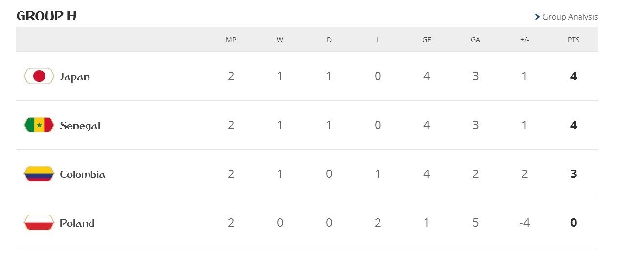 در دیگر دیدار این گروه ژاپن که تنها شانس باقی مانده قاره آسیا برای حضور در مرحله بعد مسابقات است، در ورزشگاه "وولگوگراد آرهنا" به مصاف لهستانی خواهد رفت که با دو شکست در دیدارهای گذشته تنها برای اعاده حیثیت در میدان حضور خواهد داشت. ژاپنی که پیش از این دو بار در سالهای 2002 و 2010 تجربه حضور در مرحله یک شانزدهم نهایی جامجهانی را تجربه کرده است قطعا در دیدار امروز خود ابتدا به نباختن در این دیدار فکر خواهد کرد تا ابتدا صعود خود را قطعی و در ادامه برای صدرنشینی گروه تلاش کند.