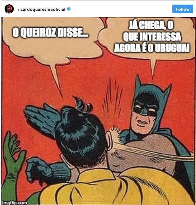 کوارشما به دنبال اظهارات کی‌روش در صفحه اینستاگرامش یک پیام و عکسی معنادار گذاشته است. این عکس بخشی از یک داستان مصور از شخصیت بتمن در حال سیلی زدن به شخص روبه‌رویش است که این این مکالمه میان آنها رد و بدل می‌شود: «کی‌روش می‌گوید (شخصیت اول) ... بس کن، الان فقط بازی با اروگوئه مهم است (بتمن)»