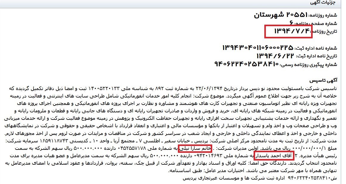 بررسی دقیق تر روزنامه رسمی نشان میدهد، این شرکت در اوایل خرداد ماه سال 97 خرید و فروش و واردات گوشی تلفن همراه را به اساس نامه خود الحاق کرده است.