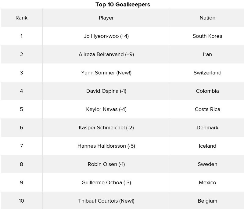 به گزارش خبرگزاری تسنیم، سایت انگلیسی «بلیچر ریپورت» در گزارشی به معرفی 100 بازیکن برتر مرحله گروهی مسابقات جام جهانی 2018 روسیه پرداخت که در ردهبندی برتری دروازهبانان، علیرضا بیرانوند با 9 پله صعود که بیشترین صعود هم بوده، پس از جو هینوگ وو، دروازهبان کره جنوبی در مکان دوم قرار گرفت.