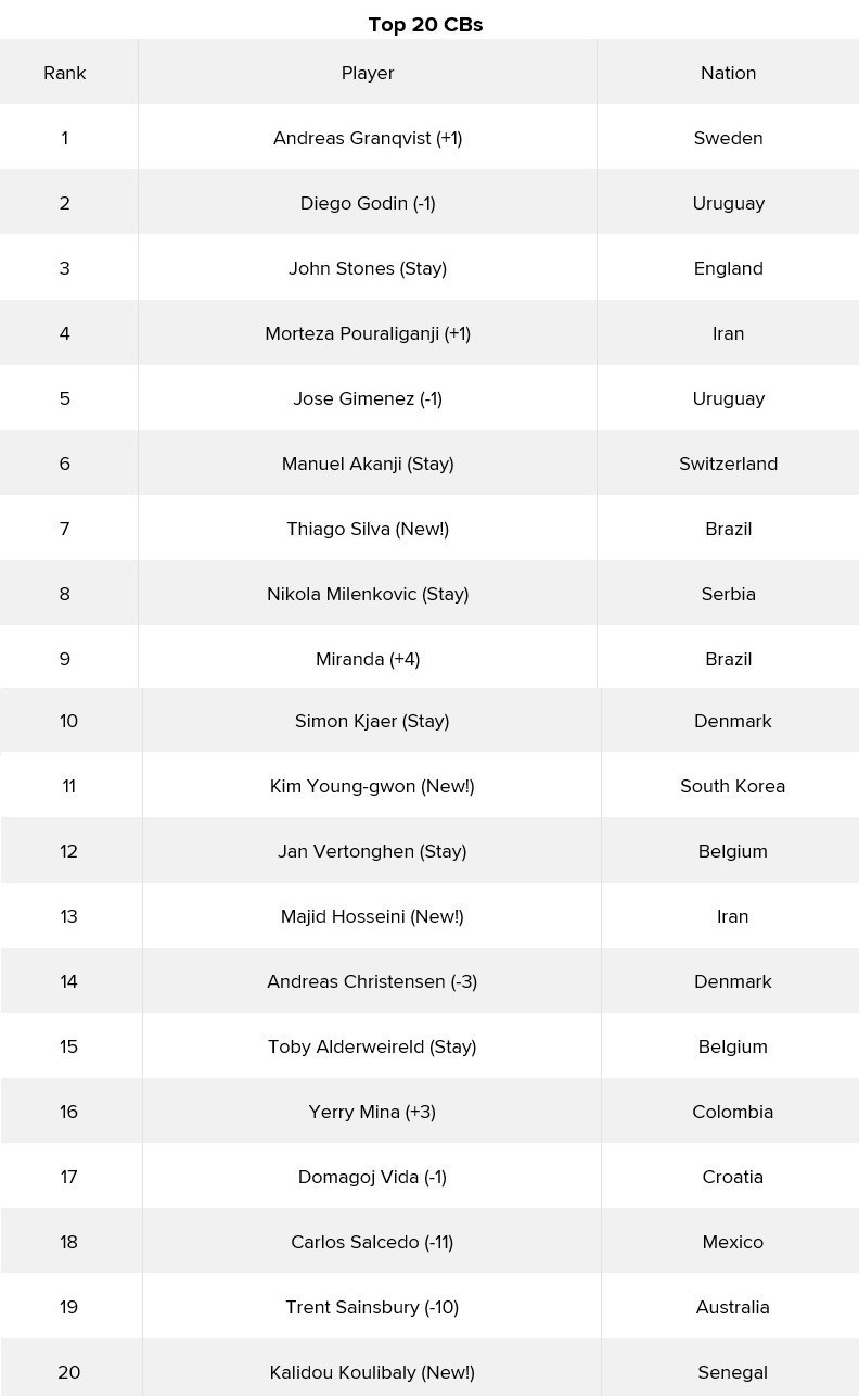 در ردهبندی «مدافعان میانی» مرتضی پورعلیگنجی با یک پله صعود در رده چهارم این ردهبندی جای گرفت و سیدمجید حسینی هم موفق شد خود را به رده سیزدهم این ردهبندی برساند.