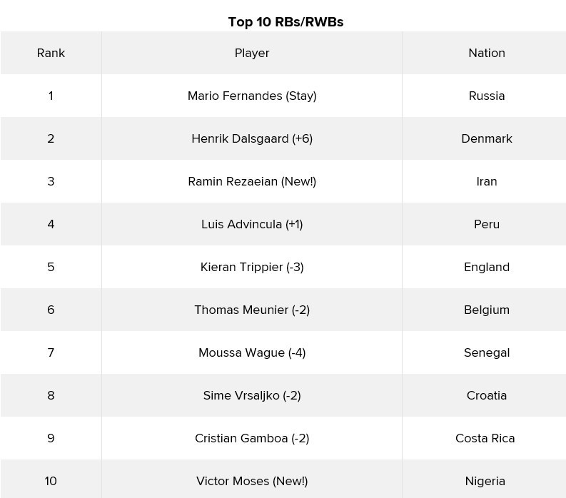 در ردهبندی «مدافعان راست و بالهای دفاعی راست» هم رامین رضاییان بیشترین صعود را داشته و در مکان سوم این ردهبندی قرار گرفته است.