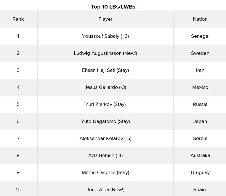 در ردهبندی «مدافعان چپ و بالهای دفاعی چپ» نیز احسان حاجصفی با حفظ رتبه قبلی خود، در مکان سوم این ردهبندی ایستاده است.