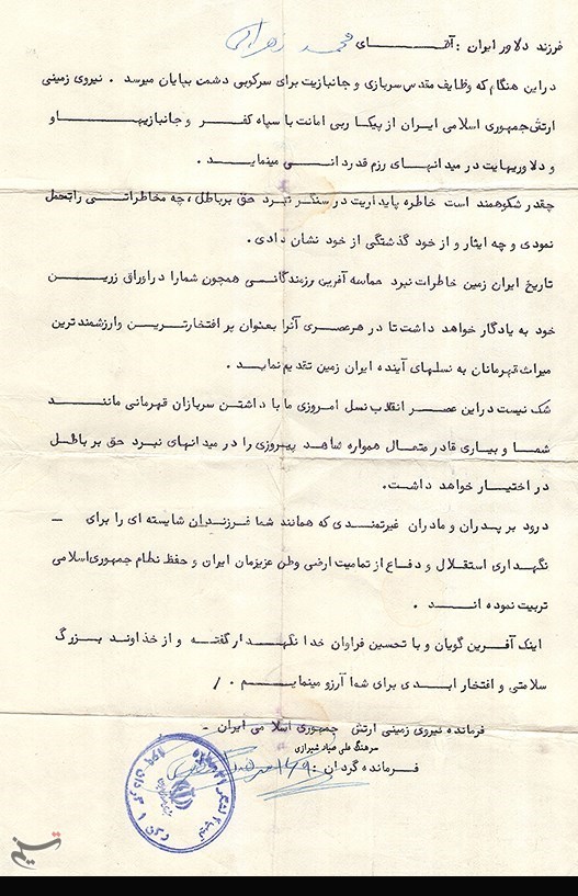 پیکر مطهرش نیز به علت ابلاغ دستور عقب نشینی به نیروهای رزمنده و طبق درخواست و توصیه خودش، در همان محل جا ماند و پس از گذشت 11 سال، در 26 اردیبهشت ماه سال 1372 مصادف با 23 ماه ذی القعده، روز زیارتی مخصوص امام رضا(ع) توسط نیروهای تفحص شهدا شناسایی شد و در تاریخ 28 تیرماه سال 1372 تشیع و در گلزار شهداء به خاک سپرده شد.