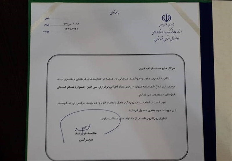 رئیس اداره ارشاد شهرستان بندر ماهشهر بیان کرد: جشنواره تئاتر استان خوزستان از 20 آبان لغایت 24 آبان سال جاری در سطح شهرستان بندرماهشهر با موضوع آزاد برگزار میشود و هنرمندان و گروههای تئاتر سطح استان میتوانند تا 15 مهر نمایش نامههای خود را ارائه دهند، همچنین اختتامیه این جشنواره با حضور معاون وزیر ارشاد و مسئولان استانی و شهرستانی برگزار میشود.