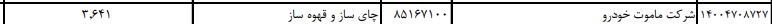 شرکت ماموت خودرو نیز 3461 یورو ارز دولتی گرفته و نام او در فهرست دریافت کنندگان ارز دولتی برای واردات چایساز و قهوهساز قرار گرفته است.
