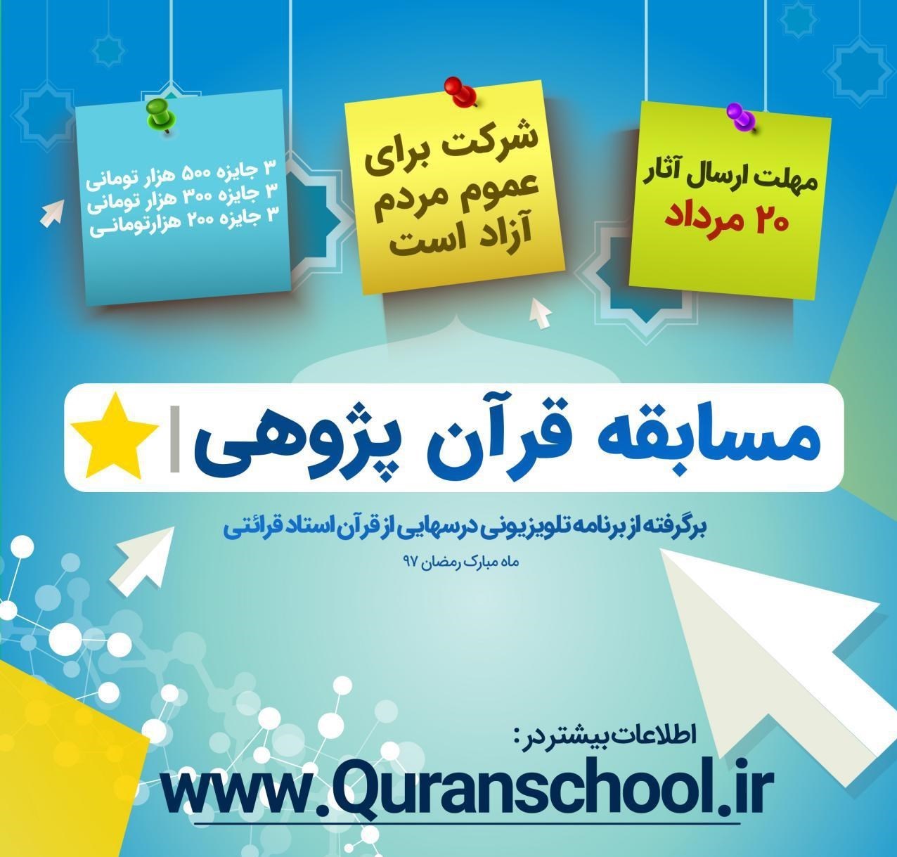 به گزارش خبرنگار فرهنگی باشگاه خبرنگاران پویا، موسسه ترویج فرهنگ قرآنی امسال بعد از ماه مبارک رمضان اقدام به برگزاری هفدهمین دوره مسابقه قرآنپژوهی برگرفته از برنامه تلویزیونی درسهایی از قرآن حجتالاسلام قرائتی در ماه مبارک رمضان97 کرده است.