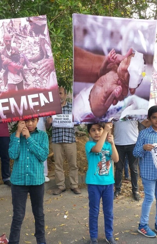 کودکان شرکت کننده با در دست گرفتن تصاویری که در آن وضعیت وخیم کودکان یمنی به نمایش درآمده بود، از سیاستمداران پاکستانی خواستند نقش خود را برای توقف حملات آل سعود به یمن ایفا کنند.