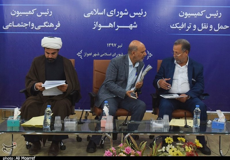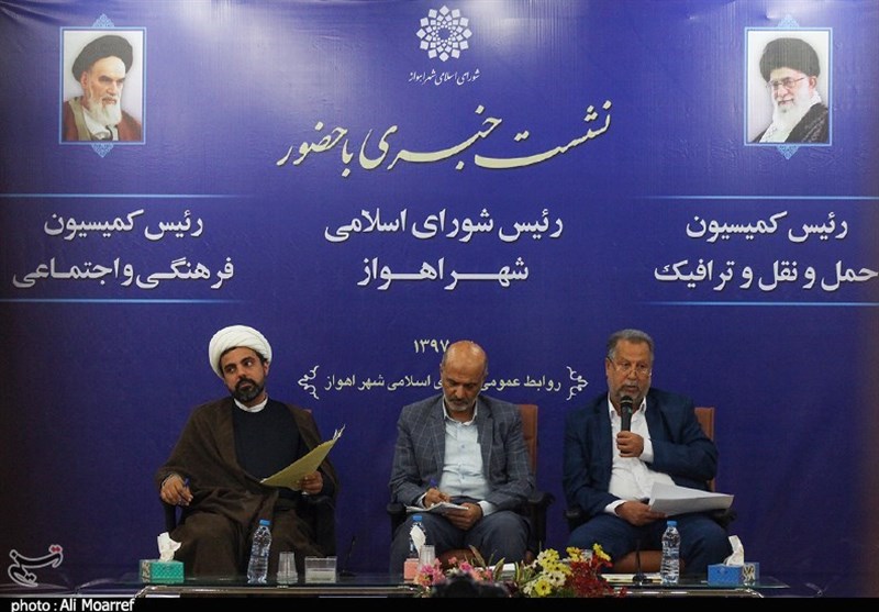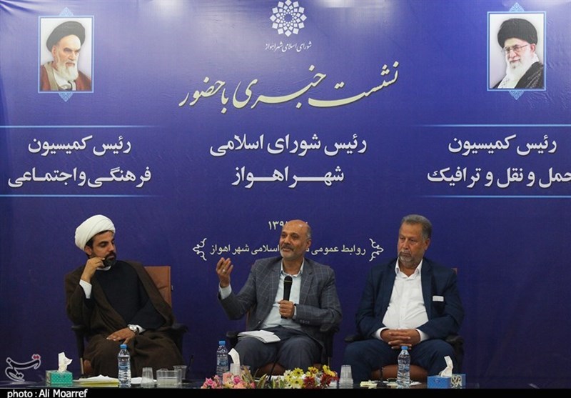 به گزارش خبرگزاری تسنیم از اهواز، صبح امروز 3 شنبه 12 تیرماه  نشست خبری شورای شهر با حضور محمد جعفر فلسفی رئیس شورای شهر، رحیم کعب‌عمیر رئیس کمیسیون حمل و نقل و ترافیک و حجت‌الاسلام جاسم موسی‌پور رئیس کمیسیون فرهنگی و اجتماعی در سالن جلسات شورای شهر کلانشهر اهواز برگزار شد.