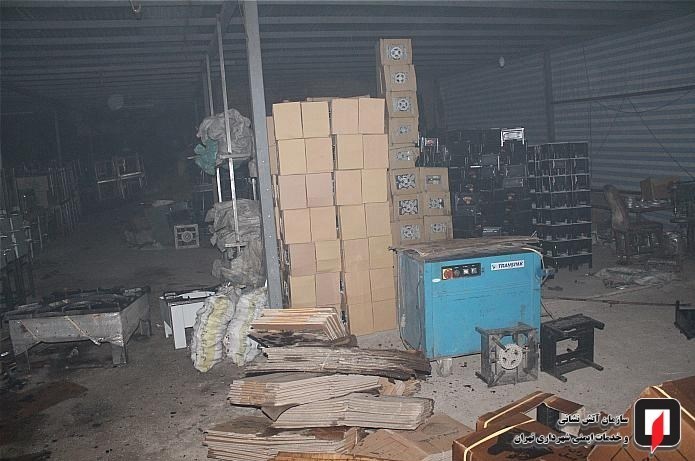 وی خاطرنشان کرد: یکی از سوله‌ها با کاربری تولید اجاق‌گاز در دو طبقه بود، در طبقه بالایی آن مقدار بسیاری کارتن، در طبقه پایین مواد شیمیایی مانند تینر و در محوطه روباز مقدار زیادی اجناس تولید شده، کارتن و چندین دستگاه سیلندر گاز نگهداری می‌شد، در سوله کناری با کاربری چوب‌بری و نجاری نیز مقدار زیادی چوب و در سوله سوم که انبار نگهداری خودروهای اسقاطی بود چندین دستگاه خودروی اسقاطی وجود داشت.